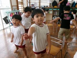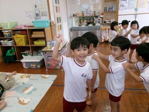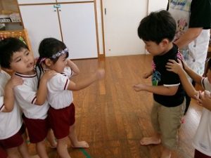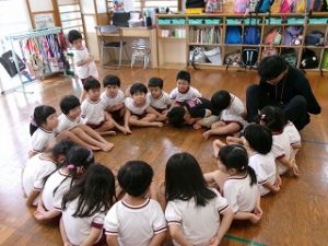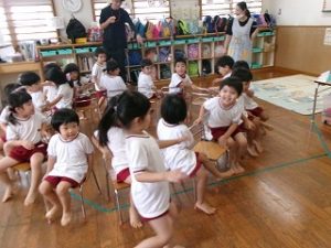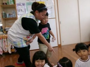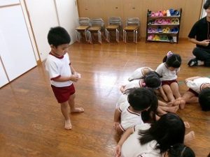 始めて「ハンカチ落としゲーム」に挑戦した子ども達は何度か繰り返す事にルールも覚えましたよ^0^