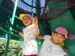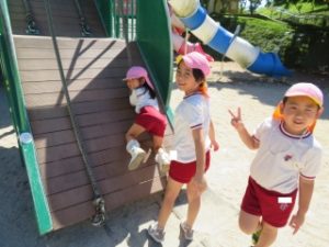 友だちと鬼ごっこをしたり、高さがある遊具に一緒に挑戦して思いきり楽しんでいます💕