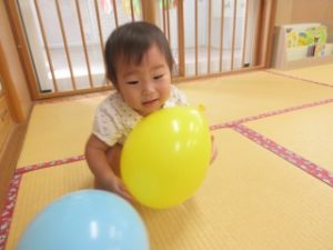 こちらは、ボール遊びで風船に触れて楽しみました!!!
