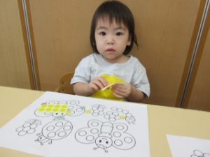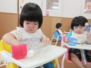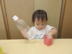 指先を器用に使ってシール貼りをしたり、ペットボトルの飲み口や