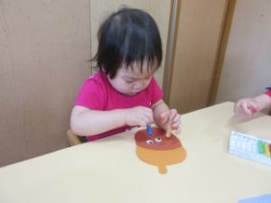 どんぐりの目を貼って、クレヨンでお絵描きをしたり…🖍