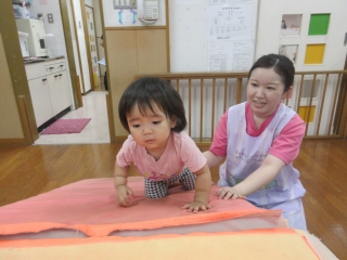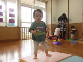 ソフトブロックの斜面を上手に這い這いで上ったり…