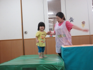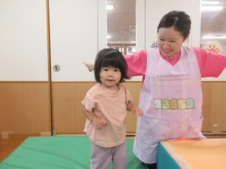 最後は段差からマットにジャンプをして、手を横に広げて「ポーズ!」💕